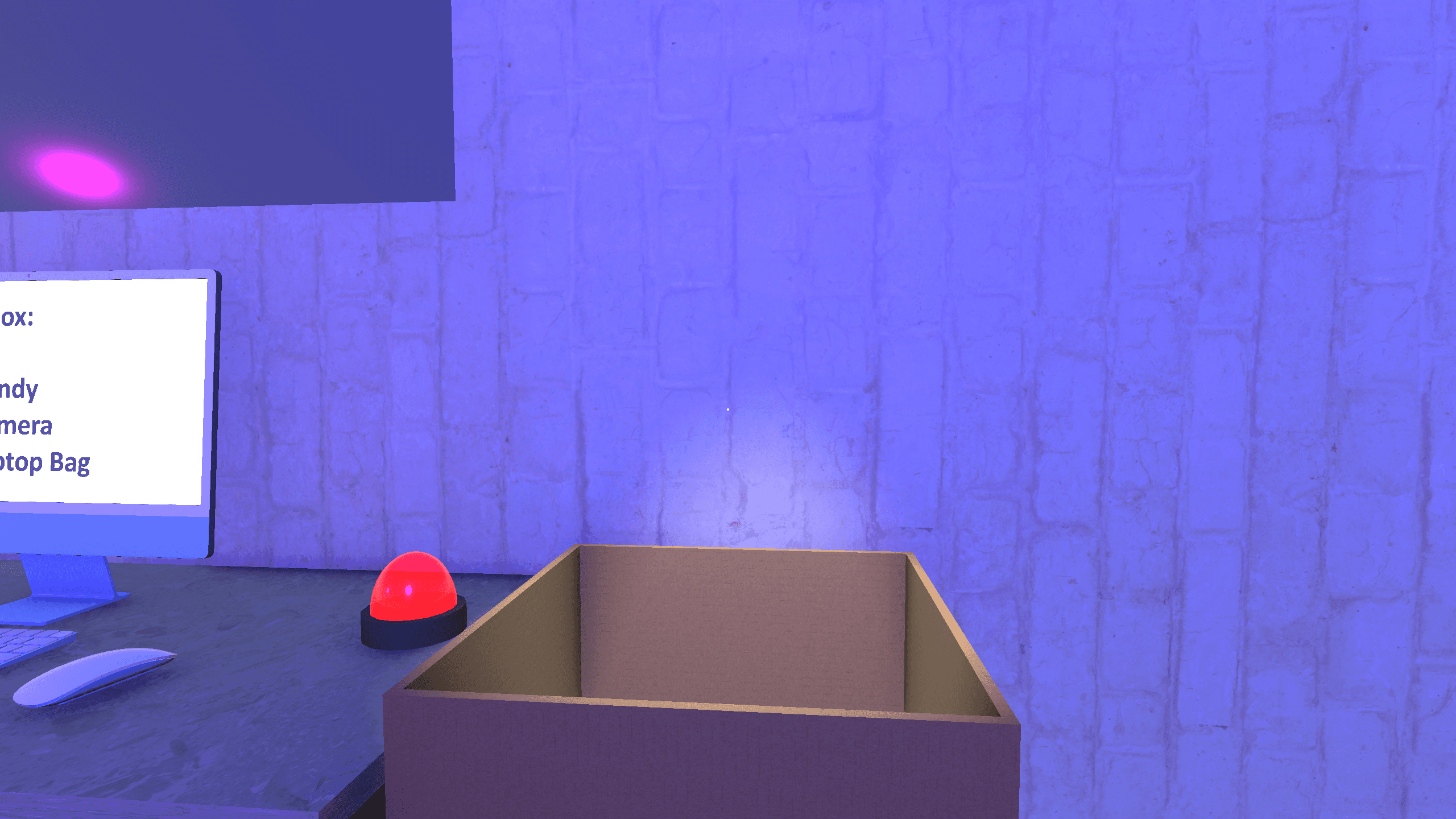 I built every aspect of the experience: visuals, audio, and functionality. All models were created in Blender and then imported into Unity, where they were connected through C# scripts to drive interactions and feedback. The system checks each item placed in the box, responding with sound cues and a nearby light that turns green or red depending on whether the packing is correct. Once a delivery is completed, a new order list can be generated for continued training.